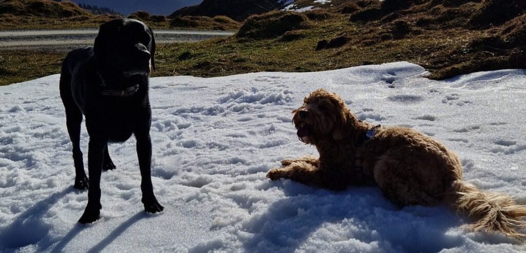 Zwischendurch gab’s eine kurze Abkühlpause am Hornköpflsee, bevor uns oben ein kalter Wind und die ersten Schneeflecken empfingen – perfekt für die Hunde, die genau solche Bedingungen lieben.